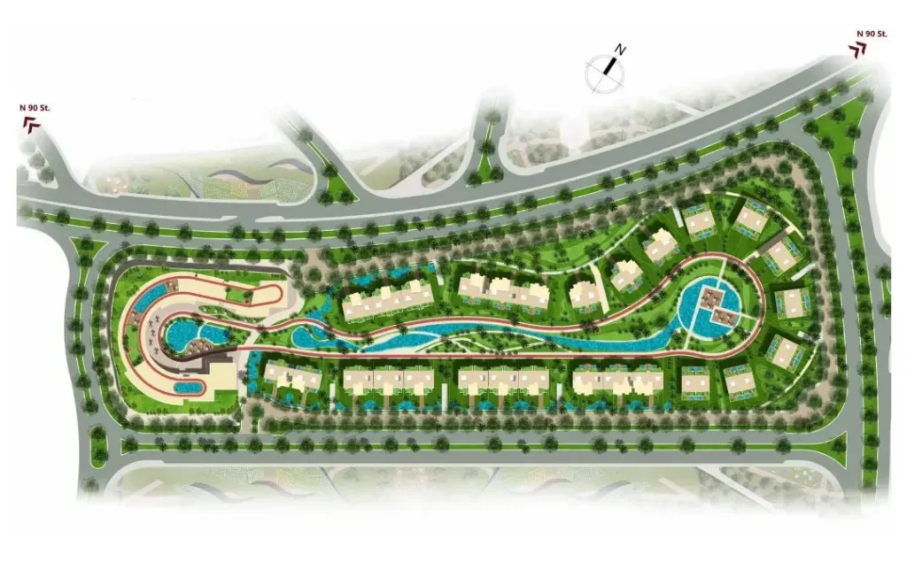 - بحيرات صناعية ومسطحات مائية تضفي لمسة من الجمال والهدوء على الكمبوند.